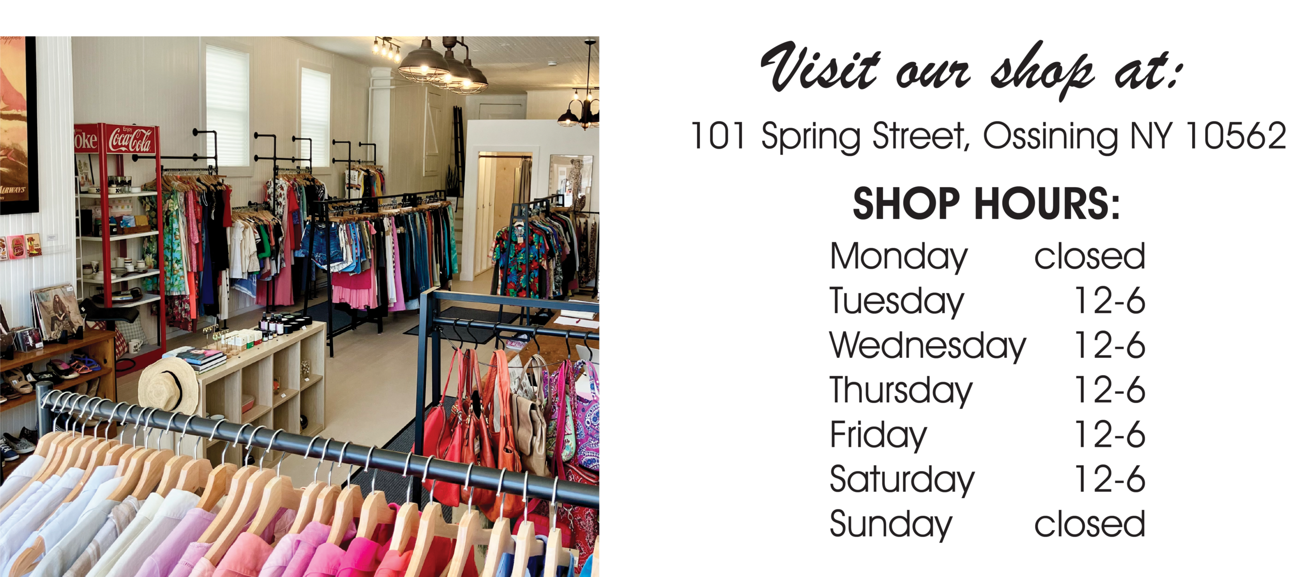 We are a woman-owned consignment boutique and your resale oasis for sustainable style. Whether you’re looking to replenish your everyday wardrobe or are on the hunt for something special, we’re here to help you sell what you have to buy what you love. Find us Tuesday-Saturday in historic downtown Ossining.